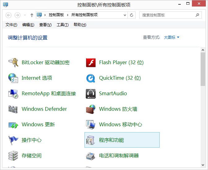 進入到控制面板后,找到“程序”菜單下的“卸載程序”,點擊進入:
