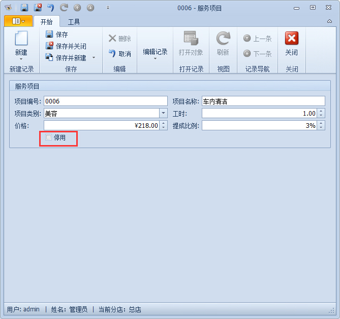②當不需要再銷售該項服務嗎,可做停用處理,銷售開單時就不會出現該項服務選項,又不影響之前業務的數據分析。