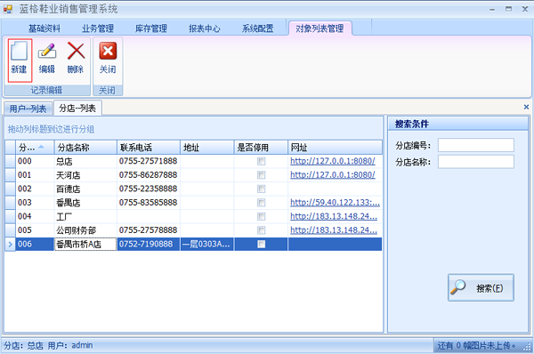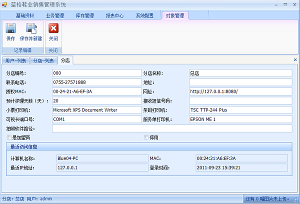 新建一個分店需要輸入分店編號,分店名稱,聯系電話,地址,授權MAC等等。
