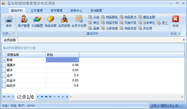 從上圖可以看出,系統不同類型的會員級別,其折扣是不一樣的。在業務操作開單中,系統根據會員級別自動調出默認折扣