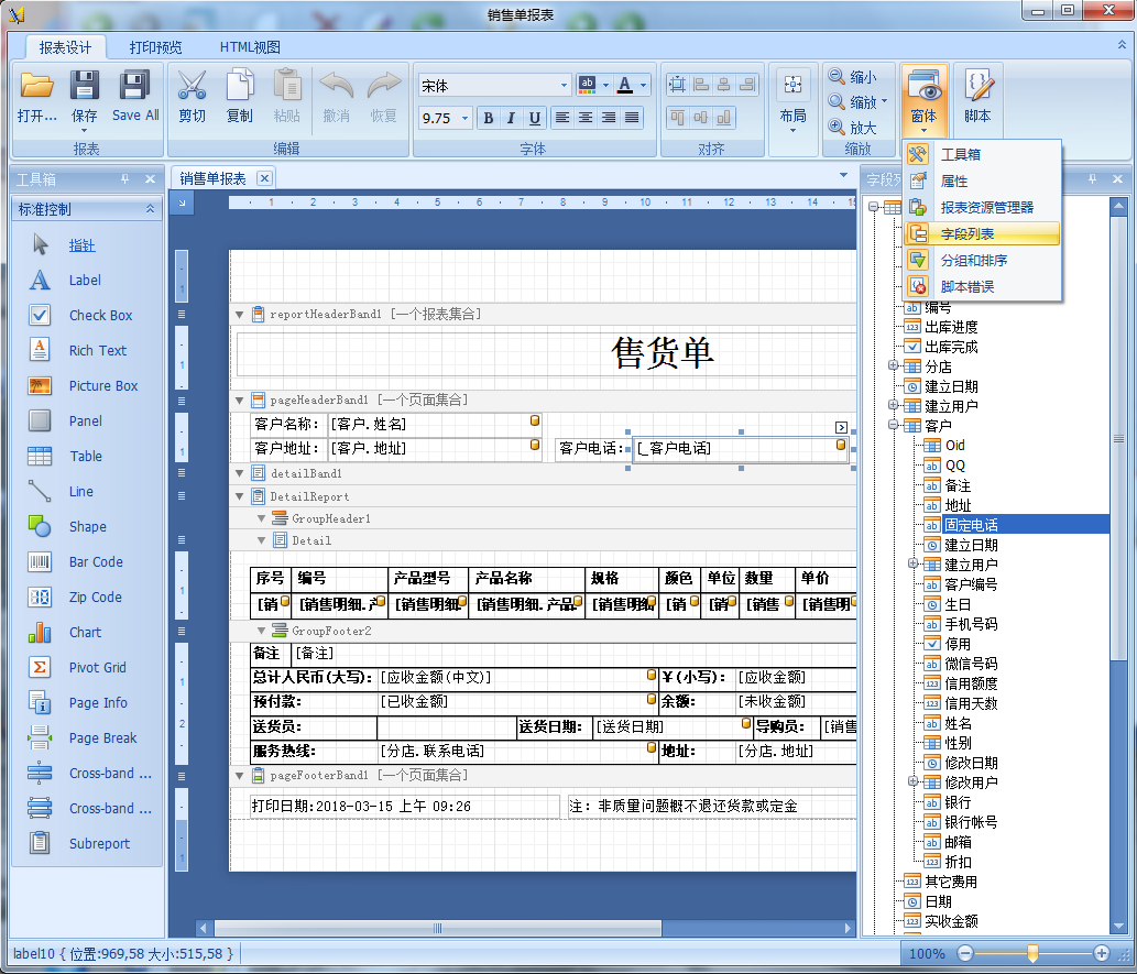 4、工具箱可以在報表添加對應的內容,如:標簽、復選框、圖片、表格等等。