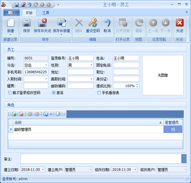 傲藍家具門店管理軟件協助做好全面的管理工作,需要將相關工作人員的信息錄入到系統中,做好系統的管理。
