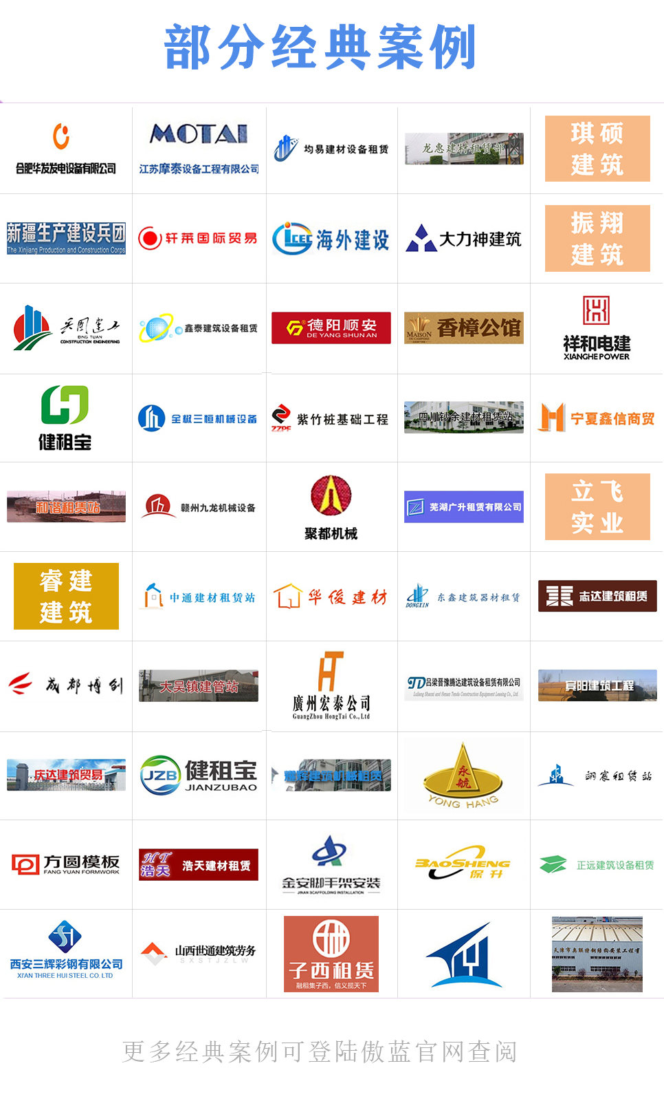 傲藍(lán)軟件,國(guó)家高新技術(shù)企業(yè),累積獲得數(shù)十項(xiàng)軟件著作權(quán)。見(jiàn)證著公司卓越的研發(fā)實(shí)力。行業(yè)精耕十多年,服務(wù)全國(guó)超過(guò)5000家企業(yè)。傲藍(lán)軟件,建材租賃行業(yè)領(lǐng)先的管理專家,是建材租賃行業(yè)優(yōu)選的管理軟件。
