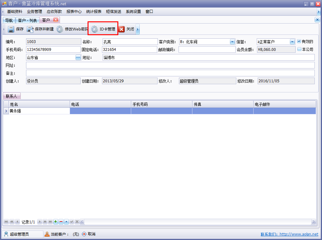 傲藍冷庫信息管理系統(tǒng),ID卡高效管理業(yè)務(wù)功能。使用ID卡進行出入庫的管理,客戶不需要攜帶出庫提貨卡,所有出庫僅憑一張ID卡就可完成,實現(xiàn)智能提貨和支付賬款,為客戶出貨帶來便捷。