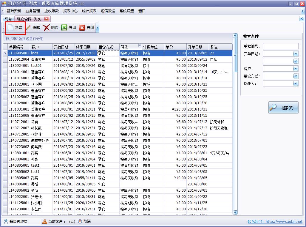 點擊【業(yè)務(wù)管理】→【租賃管理】→【合同管理】打開合同管理界面,如圖: