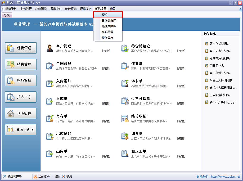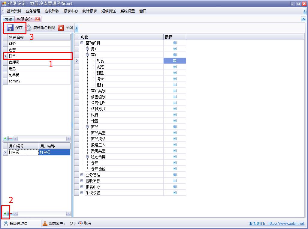 權限管理是傲藍冷庫管理信息系統可為不同的用戶設定使用功能模塊的權限,不同的用戶使用軟件的目的不一樣,權限用戶使用自身職責所涉及的功能模塊。