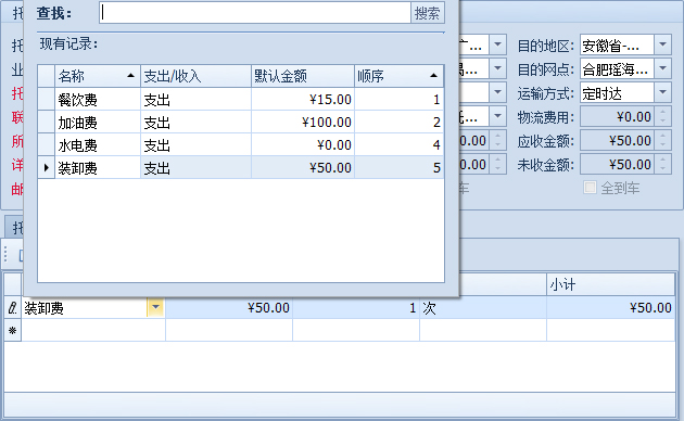 托運明細即托運貨物的具體信息。輸入貨物名稱,輸入件數、重量或體積,選擇計費方式,輸入計費單價,軟件會自動計算出運輸費用。取貨費、送貨費根據需要填寫。