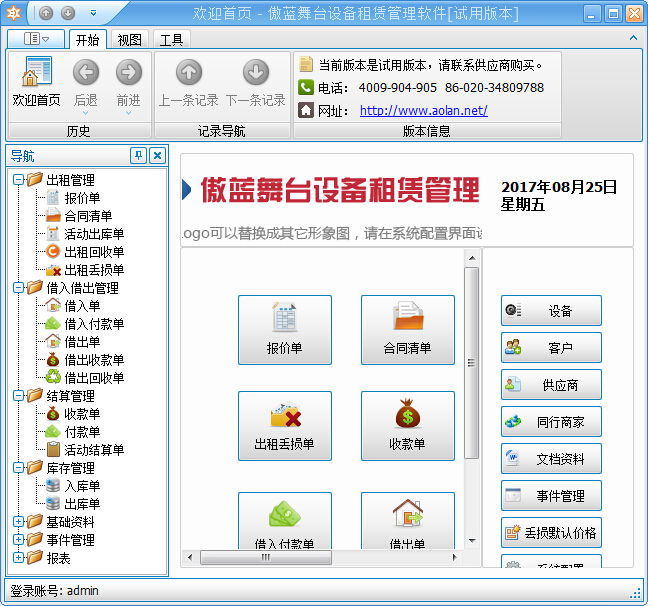 感謝您選擇并使用傲藍舞臺租賃管理系統(tǒng),為了您能盡快熟悉系統(tǒng)的操作流程,請在使用本系統(tǒng)之前仔細閱讀此操作說明書。